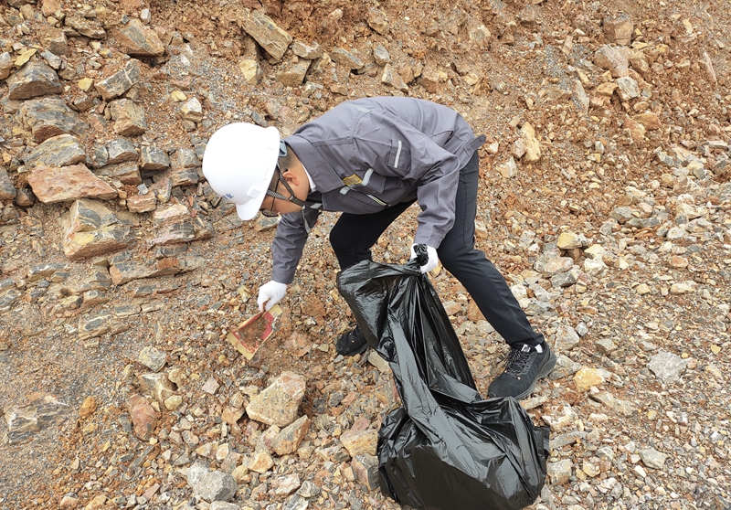 活動中,支部書記陳昌富作動員講話。在黨員同志的帶領下,大家積極參與,共同行動,對臨時表土堆場播撒草籽,復綠面積達25畝;對礦區(qū)內(nèi)平臺、道路等位置的環(huán)境衛(wèi)生進行集中整治,清理垃圾共20余袋。