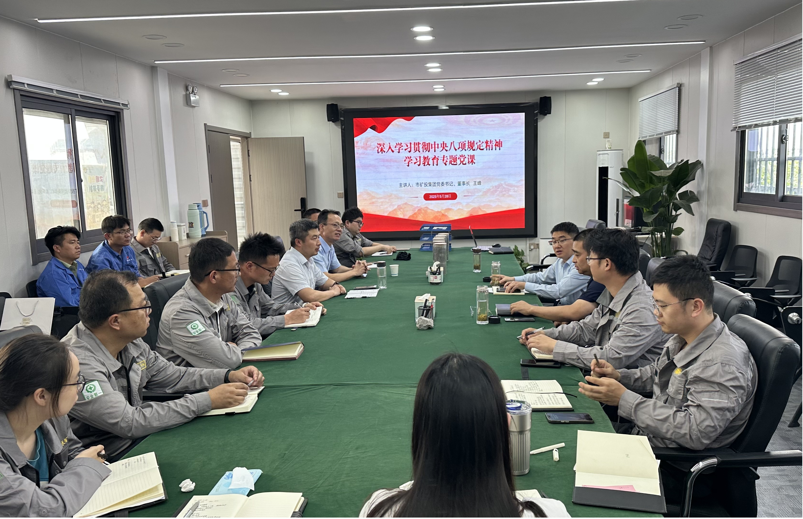 王峰結(jié)合反面典型案例在各子公司講授深入貫徹中央八項規(guī)定精神學(xué)習(xí)教育專題黨課,系統(tǒng)闡釋中央八項規(guī)定精神的時代內(nèi)涵與實踐要求。他指出,中央八項規(guī)定是新時代全面從嚴(yán)治黨的“金色名片”,必須以“永遠(yuǎn)在路上”的韌勁常抓不懈。針對黨員干部,他提出三點要求:一是提高政治站位,嚴(yán)守紀(jì)律紅線,在礦石銷售、物資采購等關(guān)鍵崗位上知敬畏、存戒懼、守底線;二是領(lǐng)導(dǎo)率先垂范,支部委員要帶頭轉(zhuǎn)作風(fēng)、樹新風(fēng),在安全生產(chǎn)、降本增效中作表率;三是聚焦主責(zé)主業(yè),將作風(fēng)建設(shè)與企業(yè)發(fā)展深度融合,以過硬作風(fēng)推動企業(yè)發(fā)展。