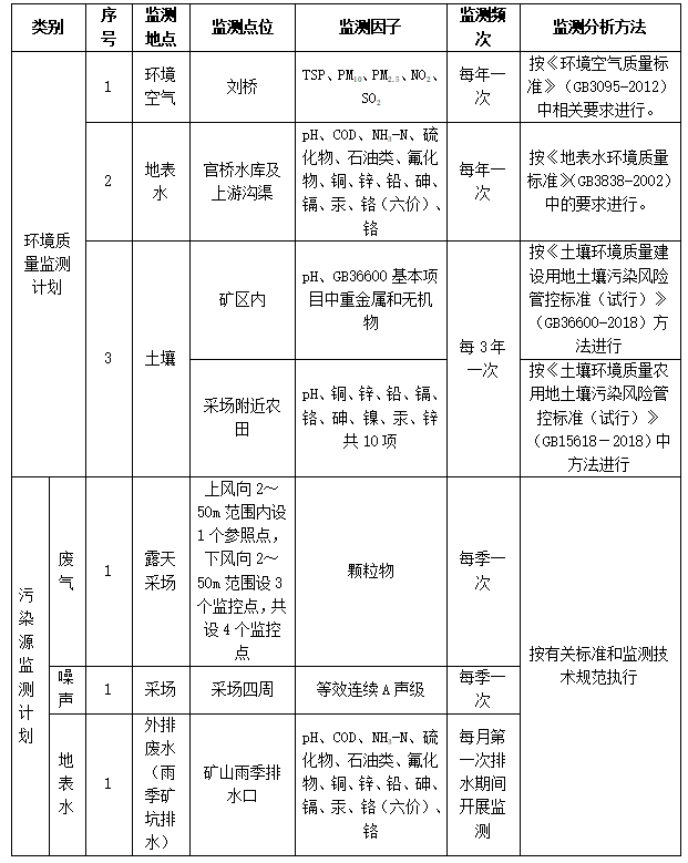 (6)招標范圍及內(nèi)容:對興天礦業(yè)諭興礦進行環(huán)境監(jiān)測和檢測,包括但不限于土壤、地下水、廢水、廢氣、噪聲等污染源進行監(jiān)測和檢測,每季度出具監(jiān)測和檢測報告。監(jiān)測和檢測報告需滿足各級主管單位、國家法律法規(guī)、行業(yè)檢測標準、《滁州市興天礦業(yè)有限公司安徽省天長市諭興地區(qū)建筑用玄武巖礦年產(chǎn) 800 萬噸露天采礦項目環(huán)境影響報告表》中所涉及范圍等要求,保證審批順利通過。