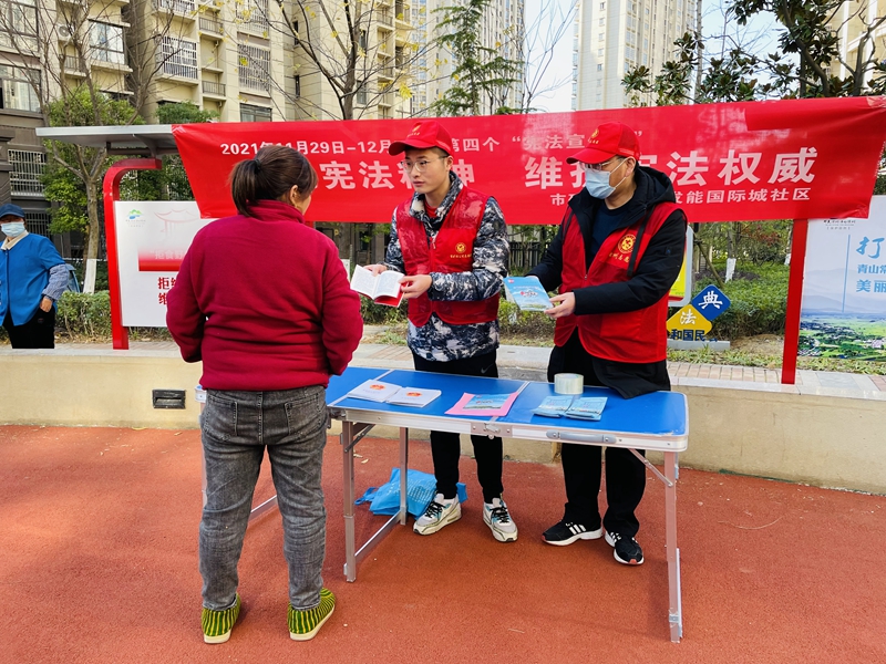 今年的憲法宣傳主題為“以習(xí)近平法治思想為指引,堅(jiān)定不移走中國(guó)特色社會(huì)主義法治道路”。在社區(qū)法治小廣場(chǎng),志愿者向居民發(fā)放憲法宣傳手冊(cè),講解國(guó)家憲法的由來(lái)、地位、主要內(nèi)容以及學(xué)習(xí)宣傳憲法的重要意義。