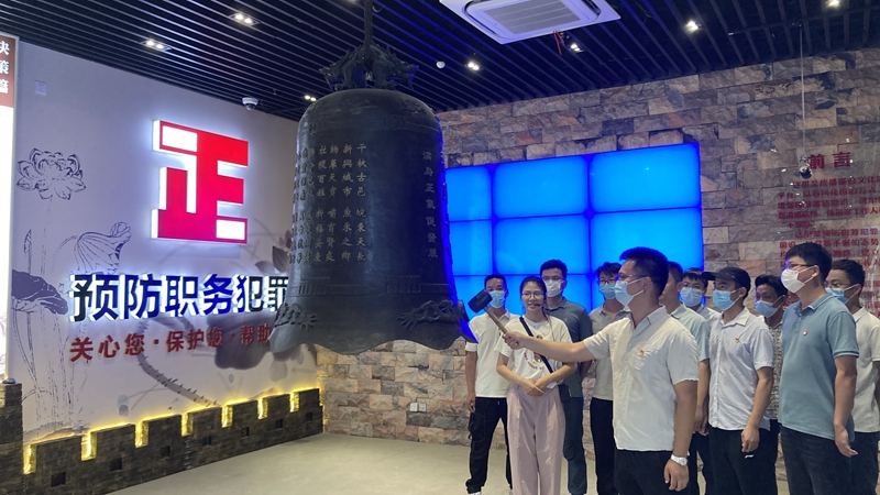 在講解員的引導和講解下,在場人員依次參觀了正氣銅鐘、正氣方鼎、廉字墻、清廉銅鏡、懲治墻等,觀看了警示教育片,學習國家領導人關于反腐倡廉工作的重要指示精神以及中國古代清正典籍。