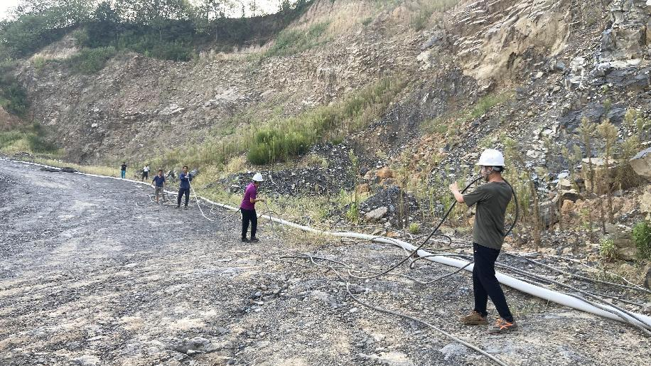 抗旱方案有了,可是要想把水從70米深的礦坑內(nèi)抽到地面,不但需要揚(yáng)程特別高的水泵,還需要高規(guī)格長(zhǎng)距離的水管和電纜,還有很多配套零部件要采購(gòu)。旱情就是命令,抗旱就是責(zé)任,興天礦業(yè)副總經(jīng)理趙崗牽頭落實(shí)抗旱物資采購(gòu),親自指揮設(shè)備調(diào)運(yùn)安裝,帶領(lǐng)公司抗旱突擊隊(duì)和社區(qū)干部深入礦坑,一起研究水泵需要多大功率安裝在什么地方、水管需要多粗從哪里下放、電纜需要多長(zhǎng)從哪里接電等問題。方案制定好了,老百姓的水稻不能等,挖掘機(jī)第一時(shí)間進(jìn)場(chǎng)整理場(chǎng)地,興天礦業(yè)和社區(qū)準(zhǔn)備的水泵、水管電纜等也迅速到位,抗旱突擊隊(duì)與社區(qū)干部群眾一起與時(shí)間賽跑,從早到晚緊張施工,一心想著的就是早點(diǎn)把水抽上去,盡量把旱情影響降到最低。