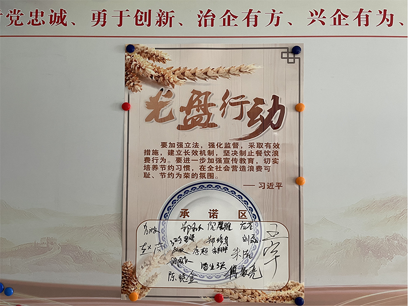 知行合一,積極參與,共做“勤儉節(jié)約”的踐行者。組織全體員工簽寫(xiě)“光盤(pán)行動(dòng)倡議書(shū)”,積極營(yíng)造節(jié)約糧食、珍惜食物的氛圍。