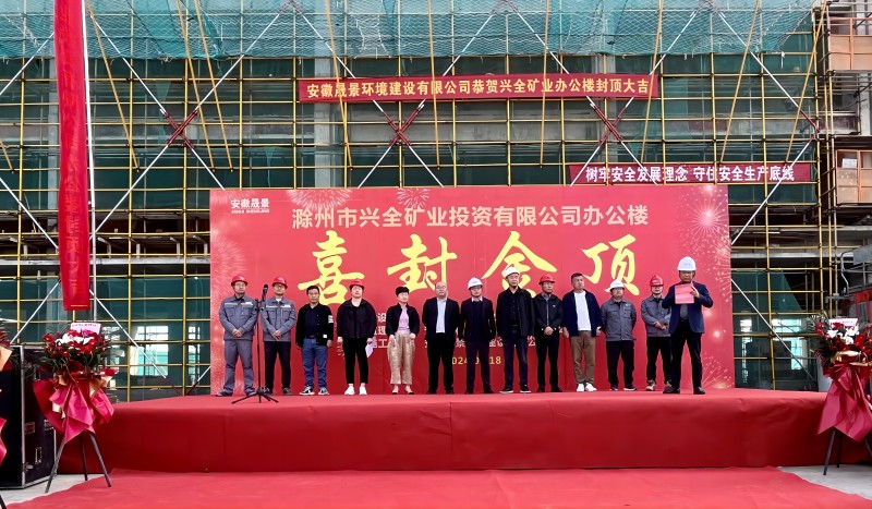 4月18日上午,興全礦業(yè)辦公生活區(qū)項目辦公樓完成主體結構封頂。